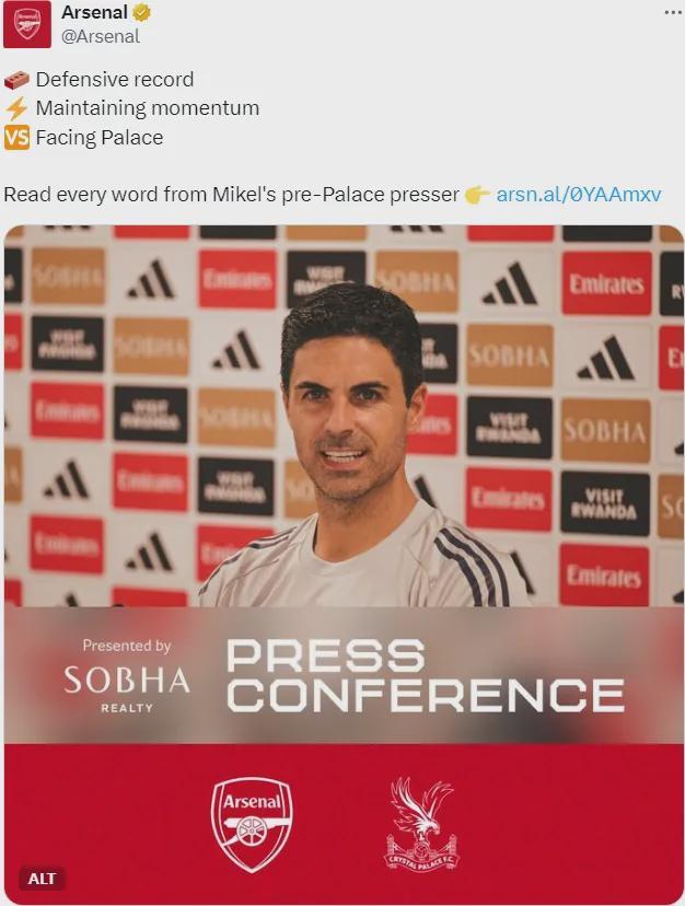 阿爾特塔出席了賽前新聞發布會,我們來看看阿森納主帥的發言。